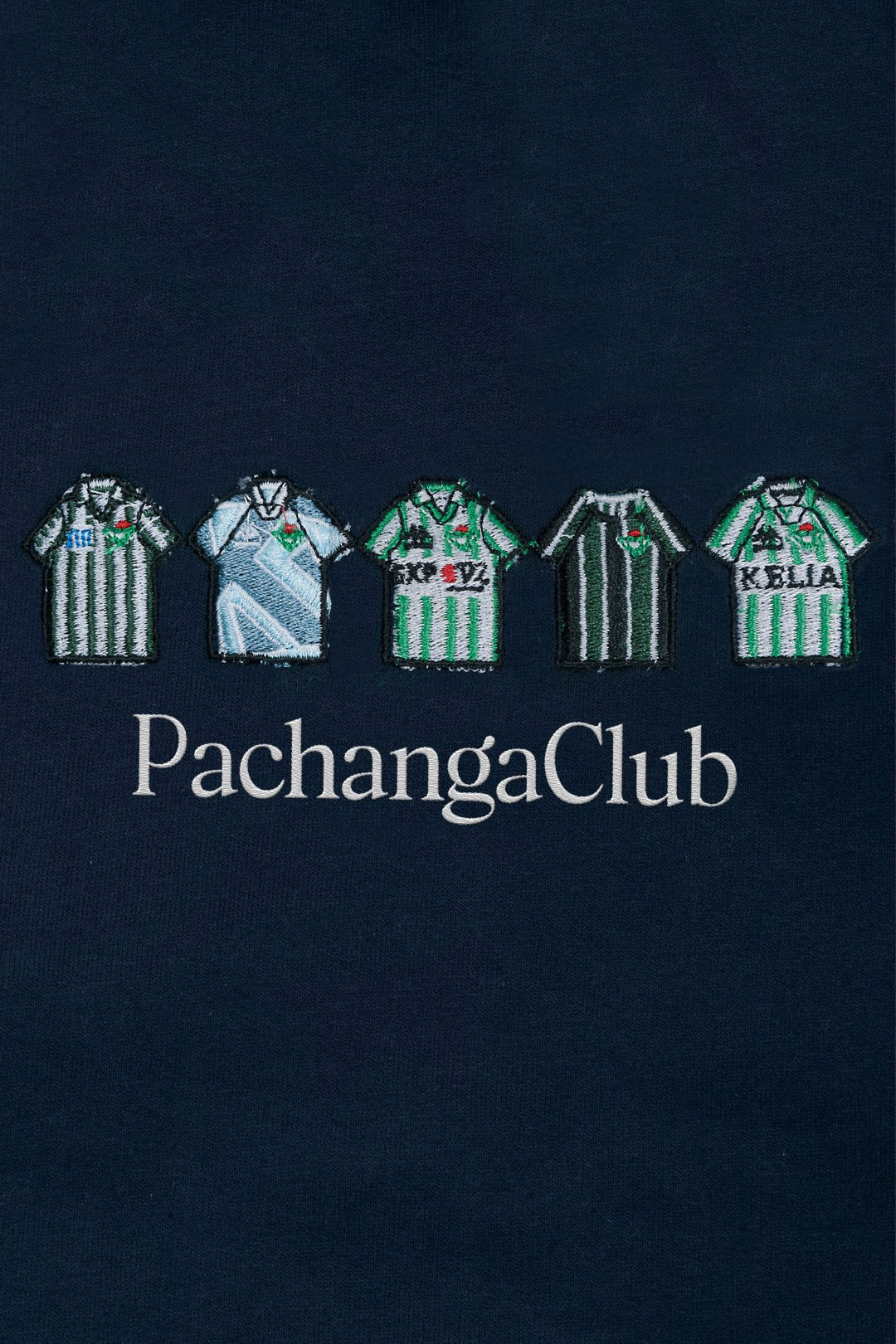 La Sudadera Equipaciones Históricas Béticos en azul marino de Pachanga Club es un homenaje a las camisetas más míticas de la afición verdiblanca. Una prenda que combina identidad, comodidad y un guiño a la historia del fútbol.