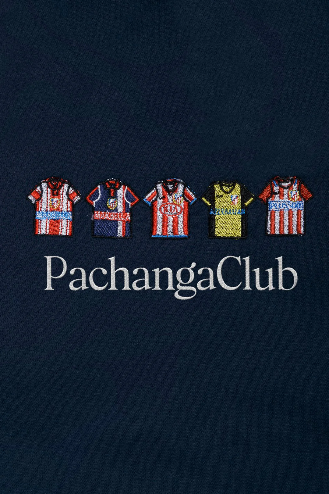 La Sudadera Equipaciones Históricas Colchoneros en azul marino de Pachanga Club es un homenaje a las camisetas más recordadas de la afición rojiblanca. Una prenda cómoda, con identidad futbolera y un bordado premium que guarda historia en cada puntada.