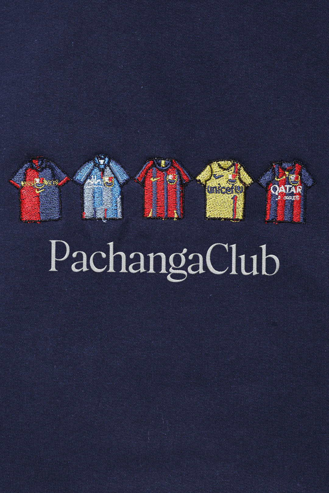 La sudadera Equipaciones Históricas Cules en azul marino es una prenda que rinde homenaje a las camisetas clásicas más emblemáticas de la afición culé, reinterpretadas con la estética urbana y contemporánea de Pachanga Club. Combina pasión futbolera con comodidad para un estilo diario con carácter.